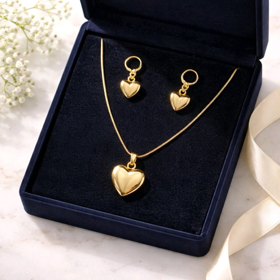 Set de collar, pulsera y aretes en brillante acero inoxidable. Un toque de distinción para tu día a día.