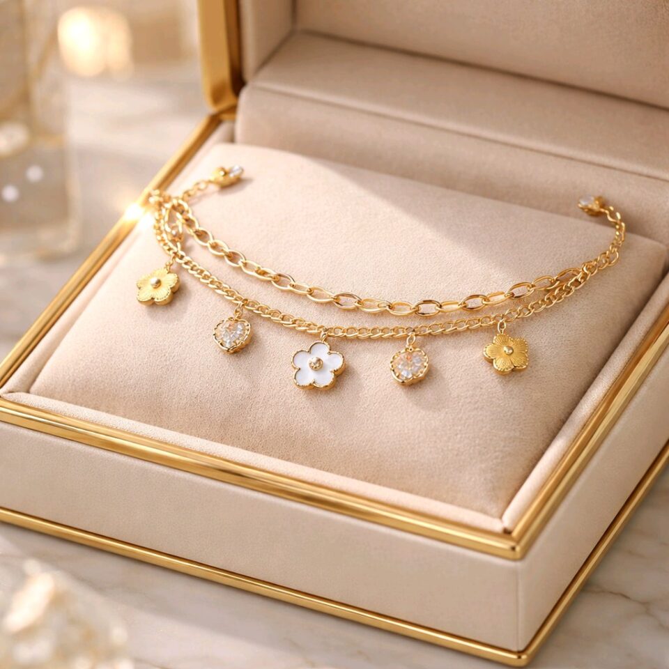 Moderno set de collar y pulsera de acero inoxidable seleccionado. Lujo discreto que enamora.